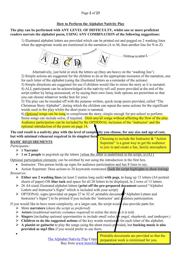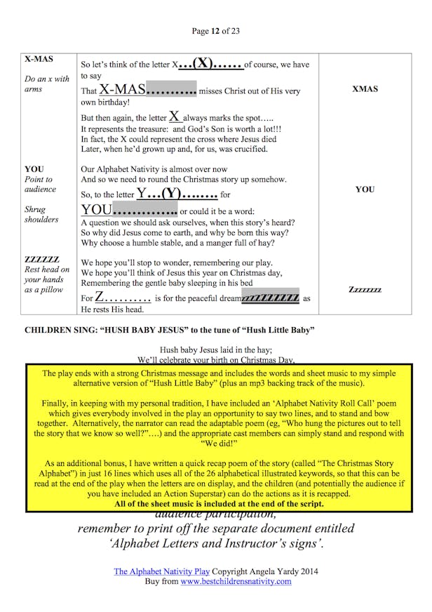 Below is a preview of the document that you will receive when you purchase The Alphabet Nativity Play script
