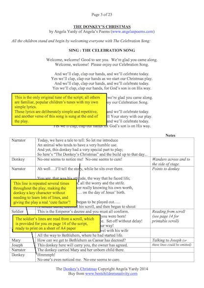 Below is a preview of the document that you will receive when you purchase the Donkey’s Christmas Play script