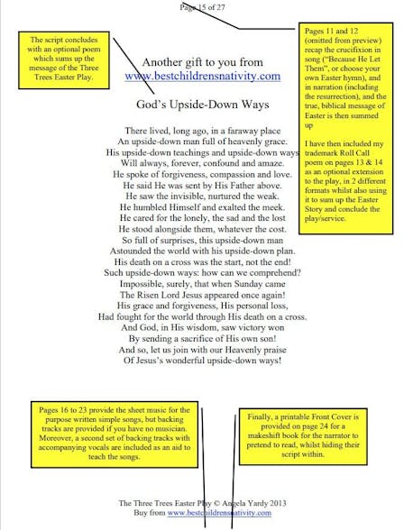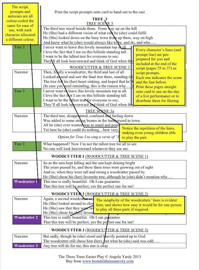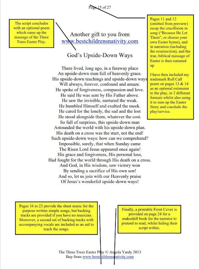 Below is a preview of the document that you will receive when you purchase The Three Trees Easter Play